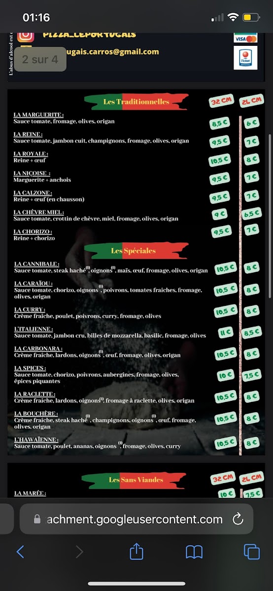 Le Portugais - Food Truck Pizzerias Menu